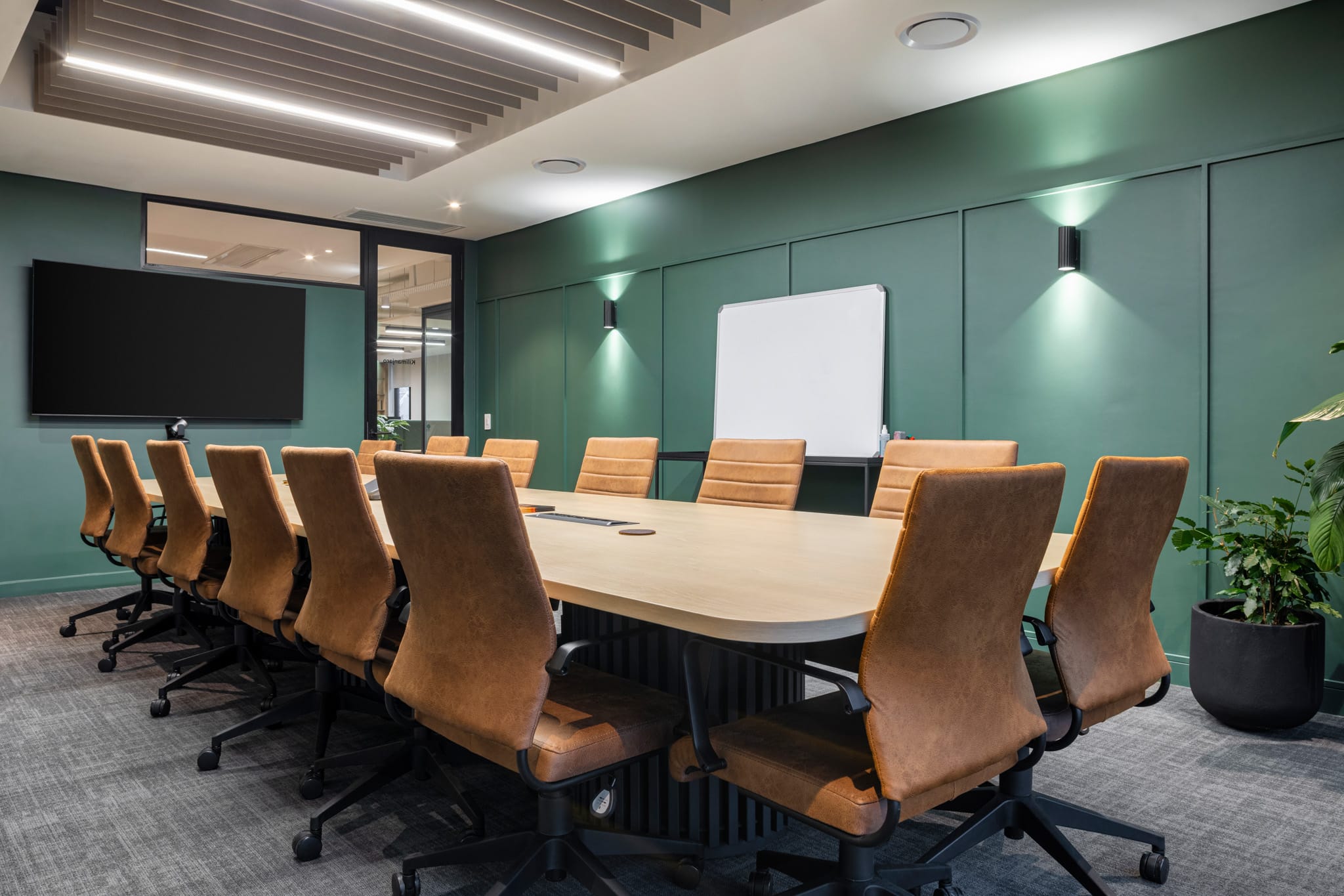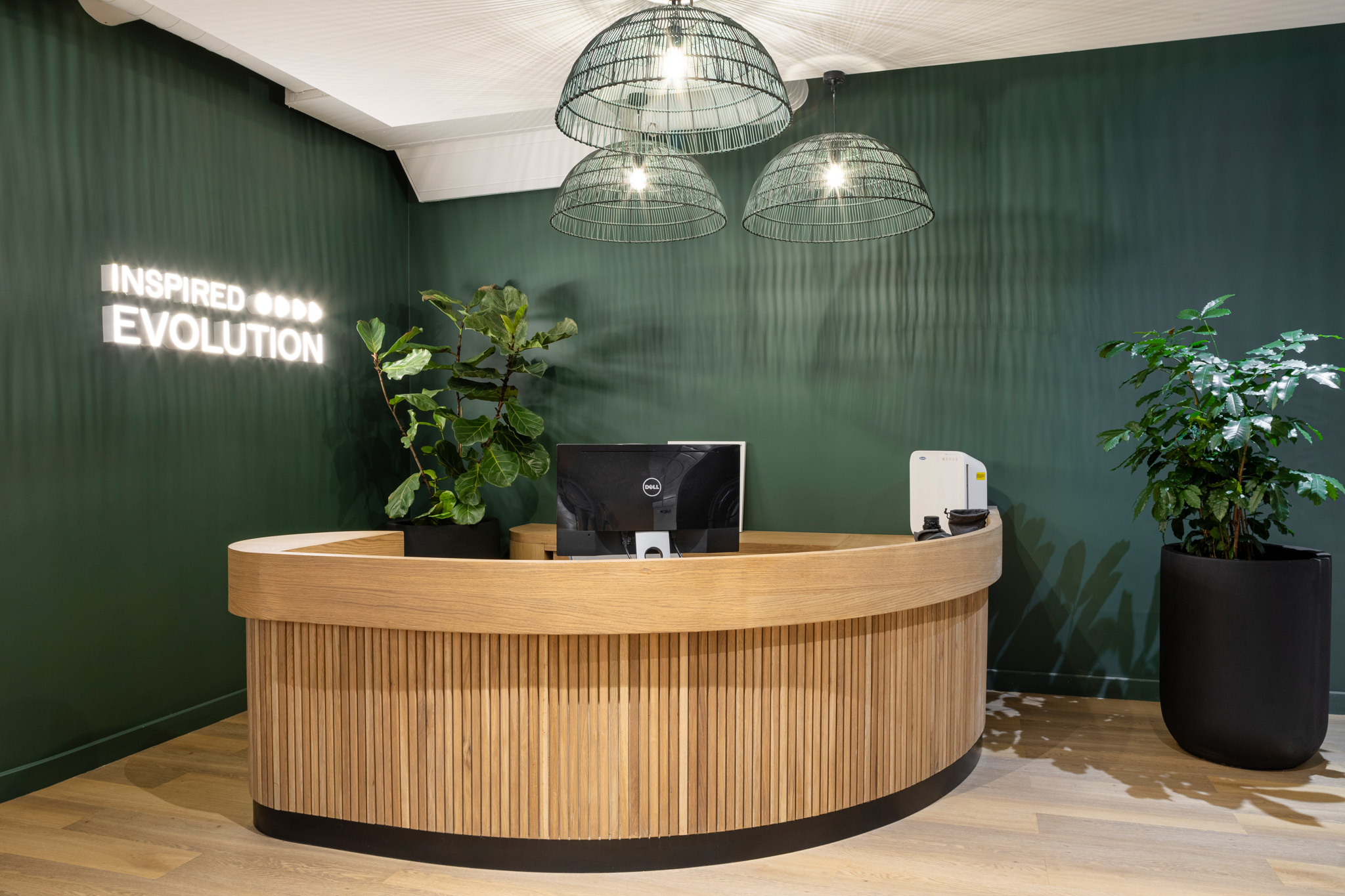 The Inspired Evolution Office Design project successfully achieved all objectives and brought the client’s vision to life. Completed in eight weeks, the resulting space balances professional and playful elements, including a vibrant kitchen with round lighting and natural wood finishes. A boardroom with leather chairs and deep green walls offers a sophisticated setting for meetings. Trend Group’s meticulous attention to detail and commitment to quality ensured a seamless delivery that perfectly reflected Inspired Evolution’s brand and values.