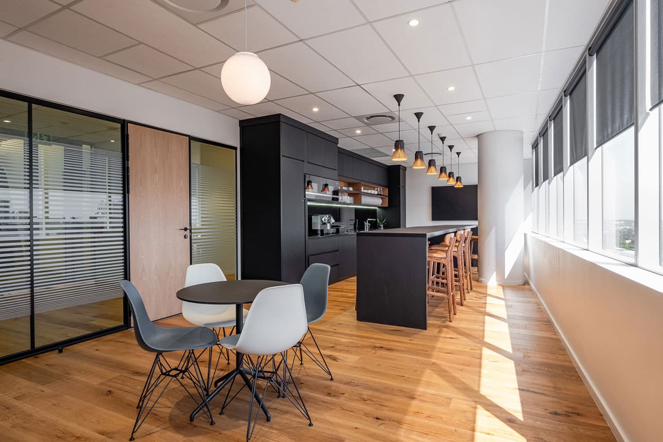 The office transformation achieved a seamless balance of functionality and visual appeal, anchored by a neutral colour palette that provided an ideal backdrop for bespoke artwork. A standout feature is the innovative “up and over” concept, for a visually captivating and functional workspace experience – through combining Houtlander furniture, handcrafted Swedish pendant lights, and warm Oggie hardwood flooring. Through close collaboration with Swiss Re and Profica project managers, Trend Group delivered a transformed office environment that encourages creativity, supports teamwork, and reflects the client’s distinct identity.