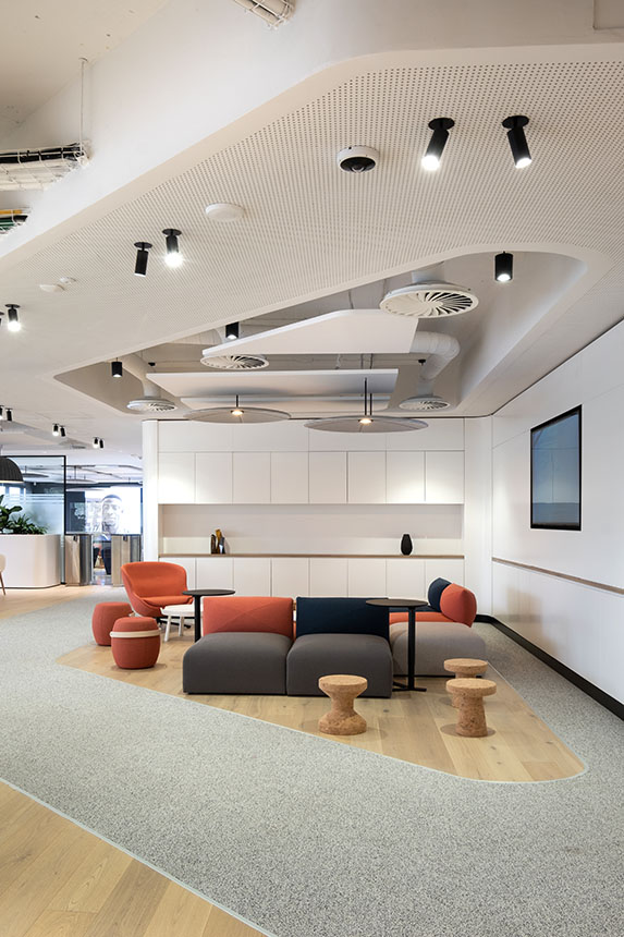 Trend Group was appointed by a multinational networking and telecommunications company to deliver their new Johannesburg offices. The client aimed to adopt a more flexible and agile working style, reducing their footprint from 12,000 sqm to a streamlined 3,000 sqm. This transformation marked a move toward a contemporary workspace designed to enhance collaboration, efficiency, and adaptability.